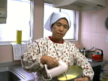 |  | 4日の友愛セールに備えて、私たちは暑い頃から、準備を少しづつ進めてきました。ミシン掛けをしたり、お菓子の研究、見合いをしたりして勉強を重ねてきました。いよいよセール直前にはケーキ作りです。 |