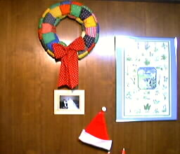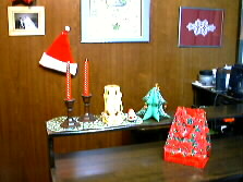 |    部屋の中もクリスマスです。20年前、シカゴで作った大きな大きなリースはいつも我が家の中心です。今年は息子達の結婚式の写真の上に飾りました。居間のカウンターの上にはキャンドル。もうすぐ帰って来る息子たちへのプレゼントも用意が出来ました。 | |