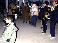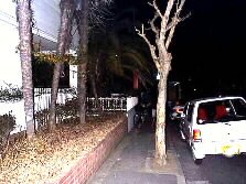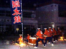 |  | 幼稚園の門の側では、走っていた車もちょっと停止して窓から顔を出して太鼓の演奏を見ていました。冬の夜の勇壮な太鼓演奏会でした。私は少し寒くなったので、急いで家に帰りまた夕食の支度の続きをしました。 |
