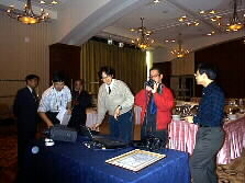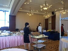 |    ニュー・コアラの忘年会場は毎年、その年に新しく出来たスポットですることが恒例になっています。そこで、今年の会場は文句なしにこのオアシスタワー21です。今までにも何度も打ち合わせをしてきましたが、いよいよ当日の準備に入ります。今日のよびもの、「大抽選会」の景品の数々も持ち込まれました。第一ホテルのスタッフの皆さんも会場準備、コアラスタッフも会場準備です。 | |