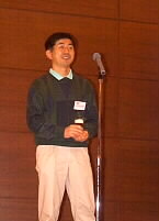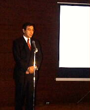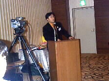 |  | 尾野事務局長の挨拶です。 コアラサポートメンバー会議が出来て、忘年会もそのメンバー主導で進められるようになったので、挨拶をすることになってしまったといわれて、ますます、インターネットでコミュニケーションということが広まっていくでしょう。。というお話でした。映像担当から、短く、ミジカクというサインがしきりに出ておりました。 |