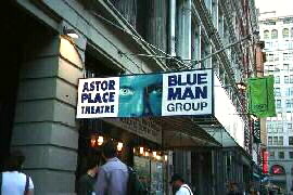 ニューヨークに行ったら是非いくつかミュージカルが見たいと思っていましたのでインターネットでいくつか調べてチケットを購入しました。ニュー・コアラの尾野事務局長が絶対これは見るべきだと言われていたのがオフ・ブロードウエーの「ブルーマン」アスタープレイス劇場です。