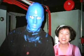 とまあ、こんなブルーマンが3人出てきてパフォーマンス。最後は白い紙が沸いてきて、、、、それ以上は企業秘密。観客も白い紙を頭飾りに配られます。それをして舞台も観客も一体となってのとってもリズミカルなミュージカルでした。幕が下りて、観客が場外へ出る時には出演者も出てきてカメラにおさまったり、サインをしたりとサービスです。