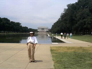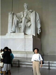 I have at last given up sightseeing of always crowded White House and Washington Memorial. I went to Lincoln Memorial on foot. Behind me is a very large, long long reflecting pool with many lovely waterfowls drifting. Many people are jogging around the pool.