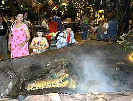 Not only children but also many adults enjoy at such a shop. Actual parrots make noise and such big realistic alligator moves and roars with its mouth open wide. |