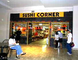We have been very tired. We took lunch at a Chinese fast food restaurant. On the opposite side of the mall was a Sushi bar like this. One piece of sushi canape was priced $1. I wonder what the taste is, but many people look like enjoying Japanese food. |