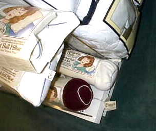 This is a buckwheat hull pillow. The shape is rectangle, circle, U, and others. They are covered with smooth cotton flannel. The price is about $35 apiece. They look like very popular, some senior people were eagerly checking them. |