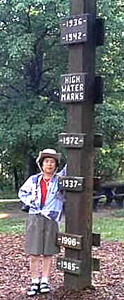This is a water level record. Potomac river gathers water from hillsides of Virginia. In spring when snow melts away, the water level suddenly swells up to give such record high mark and flooding all around the valley. Recent record is in 1996, about the height of my wrist. The highest record is in 1936. |