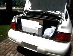 But what is still pity is we have a lot of chores during the long term travel. The valuable brand-new rental car's trunk is filled with a cardboard box, containing worn-out cloths and brochures or pamphlets that would soon become trash, to be sent back to Japan and mountains of washing. I washed and dried the cloths in a coin laundry. |