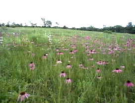 There is a word "wild flower." This is the right place to observe the real feature of it. Unknown pink, violet, and yellow flowers are blooming here and there. Patrinia Scabiosaefolia fills the field. A wonderful prairie of Mid-west. |