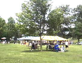 In a park, a open field party of a company was held in a big scale. People enjoyed barbecue, amateur baseball, chatting under trees, and boating. It is hot, anyway. But in the shade of tree, it is rather cool. |