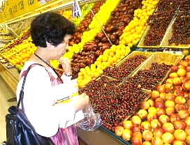 There is a mountain of cherry. As cherry is too expensive to buy enough, I made up my mind to get it. I put some of them into a vinyl bag to be scaled. The price is $1.99 per pound. As it came from Washington DC, I wondered if it was picked at Potomac river bank. |