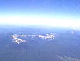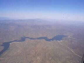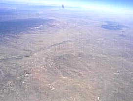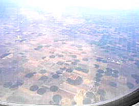 Our plane took off at 11:20a.m. heading to Phoenix, Arizona. The landscape gradually changes from green farm land of Illinois to brown arid surface. Round green spots are the fields with circular watering system. |