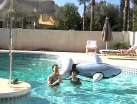 ![]() Mr. & Mrs. Don welcomed us at the air port and took us to his home. The temperature is about 95 F and hot window is raging outside. We soon enjoyed swimming at the private pool. How nice it is! |
