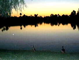 ![]() Walking around an artificial pond after diner. Sun sets about 8 p.m. |