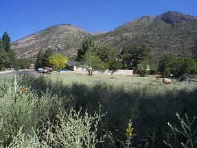 フラッグスタッフの裏山の麓まで歩きました。泊まったモーテルは幹線道路からちょっと入った所、そこから歩いて10分ほどで山の麓の家に着きました。朝の8時ごろ、Tシャツの私の腕には鳥肌が立っていました。ここは標高7000フイートです。 |