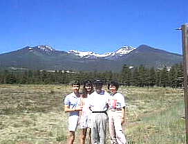 軽い朝食を済ませて、さあ、元気に出発です。ほどなく雪を頂いた山が大きく見えてきました。Humphreys peak (12643フイート)3831mですから富士山より55m高い山です。スキー場になっています。 |