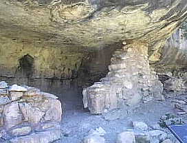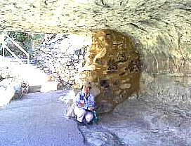 A ruin of an Indian tribe who dwelled here 800 years ago. More than several hundreds people were living in more than 300 dwellings they constructed under the natural cave similar to Grand Canyon. We will g0 around the trail from now. The square building above is the visitor center. |