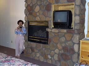One of luxurious motels in Payson. There is a gas-burning fireplace in the room. |