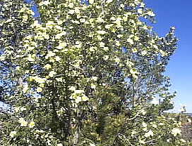 A kind of cedar. We drove through the thick forest of the cedar. The difference between this kind and that of Japanese is this cedar has no straight trunk but branches grow directly from the ground. |