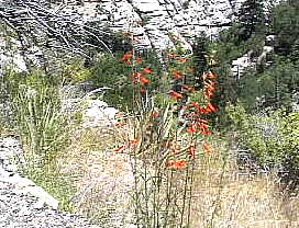 A series of flowers on the slope of Walnut Grand Canyon's Indian Ruin: The flower is called Banana Yucca. Most part of the flower looks like dry flower. |