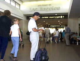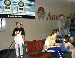 Now, the time has come to say good bye to Mr. Don and his family. Don and Mayumi kindly sent us to Phoenix air port. Domestic air lines are easy to check-in. Our big luggage were immediately picked up at the on-road-departure station. It is very helpful for passengers. We are heading to Los Angels by American West air line. |