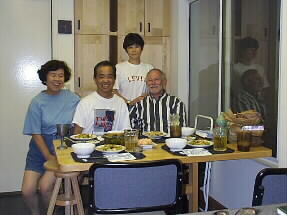 ということで出来上がったお料理を前に記念写真です。ジムさんの食品庫には干し椎茸もチキンブイヨンもわかめもかつお節も片栗粉もあって、久しぶりの中華料理を楽しむことが出来ました。 |