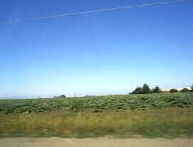 Leaving the beach, the car drives along the beach. James Dean was said to die of traffic accident near here. Soon we came up to a small town called Watsonville located at the midway of Monterey Bay. The village features agricultural production like artichoke, strawberry, lettuce, and bud cabbage. California produces about 70 % of whole vegetable production of the US. Many Japanese-Americans run huge vegetable fields that promise 3-4 times crops a year. This is an artichoke field, growing young seedling. |