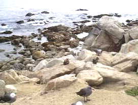 ![]() We drove around "17-Mile Drive." The shore line was very cold because of the fog peculiar to Monterey Bay, but I was still happy to see lovely sea birds and coast squirrels that came close to my foot. | |