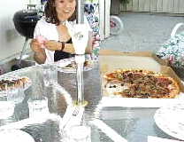 ![]() After we got back home, we enjoyed a swimming. The pool is foe exclusively for the town house residences and is located just behind Mr. James's home. Today's dinner is a big anchovy pizza we brought back from an Italian restaurant nearby. It was really tasty. | |