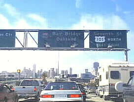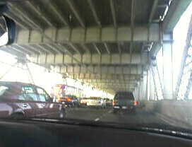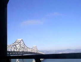 We were so absorbed in talking, we missed a right way to downtown. We were forced to cross Bay Bridge against our will. The bridge is of two storied, crowded with the evening rush. The lower lanes finally brought us to Oakland. |