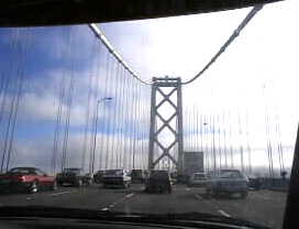 There is a toll gate on the upper lanes. We paid $2 to cross the bridge. The fog was disappeared and I could view a wonderful landscape. I felt as if I wanted to say thank you for our mistake. I got a glimpse of Golden Gate in the fog far in the west. |