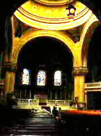 ![]() 教会は美しい壁画が描かれていて、内部も素晴らしいステンドグラス。パイプオルガンの素敵な音色を聞くことが出来ました。 | |