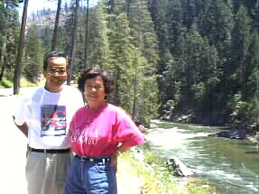 | I have been asking the James' to arrange a trip to Lake Tahoe from the beginning. Today is the very day to drive up there. I got up early in the morning and sent home page files to the server. At 9:40, we left home by Mr. James' driving. We passed through his office, Micromedia, and other offices like AMD and 3COM. After passing Milpipas crowded with Filipinos, we continue heading west to Stockton. | |