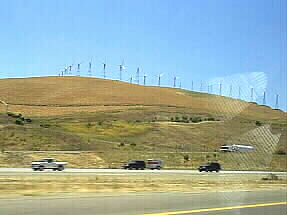 ![]() Brown hills that look like desert turn green on the spring rains. This is Livermore district. Hundreds of windmill are rotating on the top of the hill to generate electricity. When I looked back, I felt somewhat eerie, so many windmill are rotating quietly in the hot desert. | |