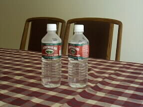 Two water bottles. Can you identify the difference? On the right is a bottle we took and opened in Lake Tahoe. On the left is a normal bottle. The shape of right bottle becomes dented by the difference of atmospheric pressure. The pressure was so low at Lake Tahoe.