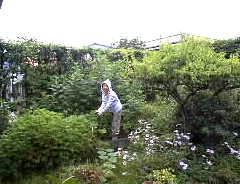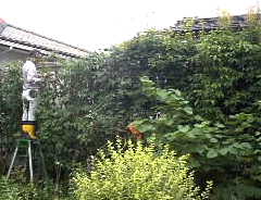 Evergreen oak trees are also overgrowing on the border of the neighbor. My husband soon hung a mosquito coil on his wrist and started trimming the bush. If trees are left as they are, they will be rotted from suffocation. |
