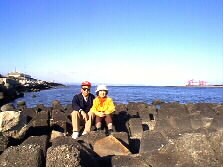 ![]() ようやく、大分川の終点にやってきました。河川敷も途絶えて、テトラがガラガラと置いてあります。後は広い海が広がっています。対岸のように見えるのは、別府湾を隔てて国東半島です。右には工業地帯の大きな赤いアンローダーが見えています。家を出てから15キロ、時間は3時でした。お疲れ様。