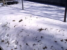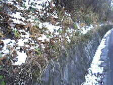 |  | 由布岳の麓の湯布院に行きたかったのですが、道路が凍っている所があるようなので、諦めて久住の方へ行きました。我が家のある富士見が丘を抜けるとそこはもう野津原町。すぐに日陰の道にはこんな雪が出てきました。 |