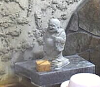 |    泉質は炭酸塩泉で神経痛、胃腸病、糖尿病、肝臓病に効くそうです。久住山の眺められる露天風呂、大きな桶の薬湯などがありました。空気が冷たくて露天風呂の温度が低くなっていて、ちょっと入ってられなかったのが残念です。温泉場の片隅でも布袋様が微笑んでいます。お湯はとってもなめらかで、少し湯の華が浮いている気持ちの良い温泉です。 | |