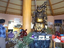 |  | 中へ入るとこんな大きな布袋様が出迎えてくれます。夢に布袋様が出てきてここを掘ると温泉が出ると教えてくれたのだそうです。 |