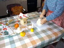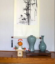 |  | 1999年のお正月もお終いです。今日は鏡開きです。床の間に飾っていた鏡もちを下げます。 |