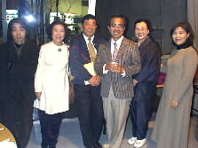 |  | 私たちもたくさんのお友達と一緒にお祝いの席に連なることが出来て大変うれしかったです。 左から、ゆふいん音楽祭の実行委員長の加藤昌邦さん、永野Mie、山水館の会長小野さん、永野Ken、夢想園社長の志手さん、ことこと屋の美佐子さんです。 |