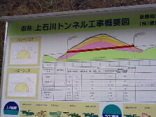 |    トンネル工事の説明図です。なるほど、坂になっているのがよく分かります。トンネルの断面図では、壁に打ち込まれたボルトが4メートルもあることが分かりました。 | |