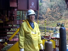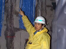 |  | 現場の安全担当の加藤信幸さんです。ヘルメットを貸して下さって、案内をして下さいました。デジタルカメラを見てそこからインターネットの話になり、ナント、コアラ事務局の是永さんを知っているということで、まあなんて世の中は狭いのかと3人で本当にびっくりしました。 |