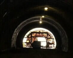 |  | トンネル工事で恐いのは、水が出ることだそうです。このトンネルは比較的乾燥しているそうですが、それでも所々、ビニールが貼ってあったり、排水の管を通していたりします。 |