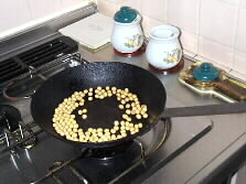 |    今日は24節句の中の節分、邪気を払って春を迎える「豆まき」という行事があります。お寺や幼稚園も盛大にします。我が家でもいつも夜になるのを待って豆まきをします。夕方、私は大豆をフライパンで香ばしく煎って、かわいい升に入れ、豆まきの準備が整いました。 | |