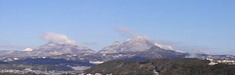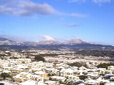 |  由布岳(左)も鶴見岳(右)もそして写真には入っていませんが、お猿が居るので有名な高崎山も白くなっています。 | |