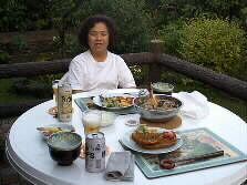 Here in Oita, the rainy season started yesterday, TV says, but we have had a refreshing air in the evening. I sprayed water on the garden and enjoyed a nice dinner in the terrace. |