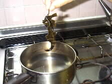 The continuous torrential rain at the end of the rainy season ceased for a while in this Saturday afternoon. My husband came back home with big shopping bags in his hands, saying "I will prepare a tasty dinner tonight for you." He soon stands in front of the cooking table. The first thing to do, he stresses, is to make a good stock. |